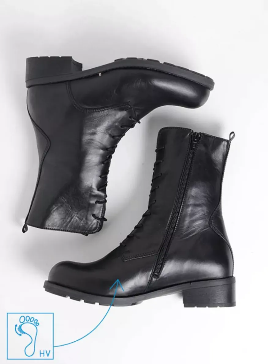 Deze vrouwelijke bikerboot kan wel eens jouw lievelingsschoen worden dit najaar. De Emery HV heeft een rits én veter, zo kan je de schoen precies om je voeten afstellen en makkelijk in- en uitstappen. De Emery HV heeft een prettig draagbare hakhoogte en een stevige zool die maakt dat je er urenlang op vooruit kan. Dit is nu echt zo’n typische altijd-goed-laarsje! Door de extra ruimte bij de aanzet van de grote teen is deze laars ook geschikt voor wie kampt met hallux valgus.