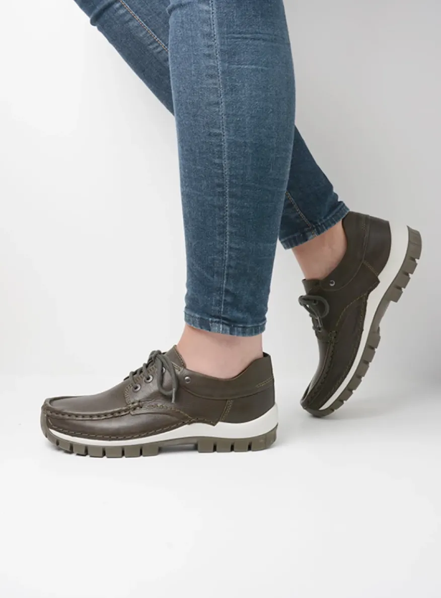 Verlaat je huis in stijl met Wolky’s Fly! Deze stoere lage veterschoen heeft een leuke kleurcombinatie met een extra speels effect, waardoor het lijkt of het leer is omgeslagen om de enkel. De Fly is extra comfortabel door de twee componenten zool. De tussenzool is gemaakt van PU, dit maakt de schoen licht van gewicht, en het onderste gedeelte van de zool is gemaakt van TR. Dat zorgt voor het dempend vermogen en de buigzaamheid. Daarnaast heeft Wolky’s Fly een mocassin naad, dit zorgt voor extra flexibiliteit.