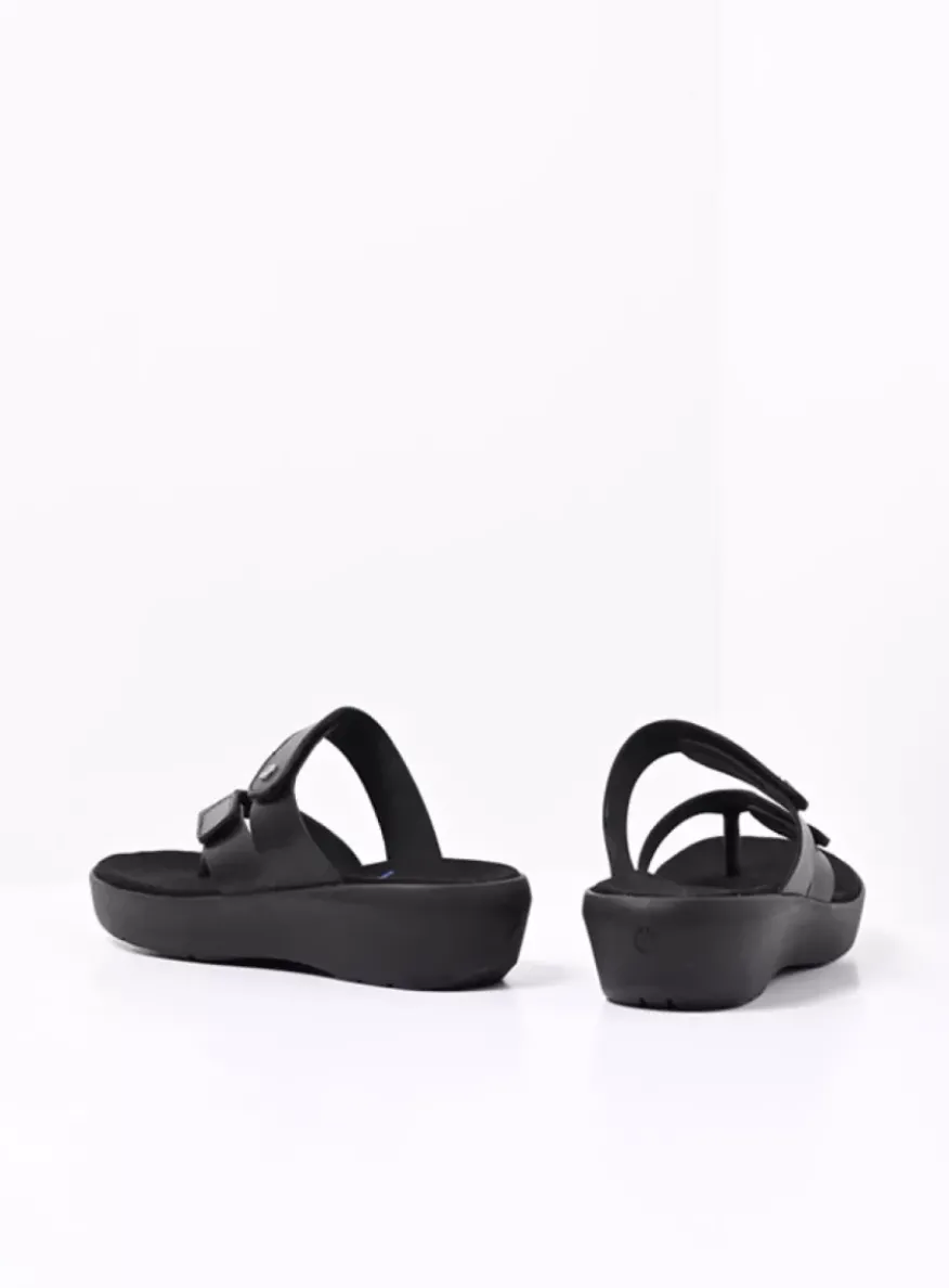 Chique en comfortabel: dat is de deze vegan teenslipper ten voeten uit! De Hobie is gemaakt van hoogwaardige vegan materialen die zacht aanvoelen en lang meegaan. Het voetbed is bekleed met een comfortabel dekje dat je voeten op een fijne manier ondersteunt. Onder dit dekje bevindt zich een laag memory foam voor optimale demping bij elke stap. De Hobie heeft net dat beetje extra hoogte onder de hak, waardoor je voet op een natuurlijke manier afwikkelt. De slipper is eenvoudig aan te passen met de twee klittenbandsluitingen op de wreef en de voorvoet. Wel zo fijn; zo stel je de pasvorm perfect af en hoef je niet met je tenen te ‘knijpen’ om de slipper aan te houden.