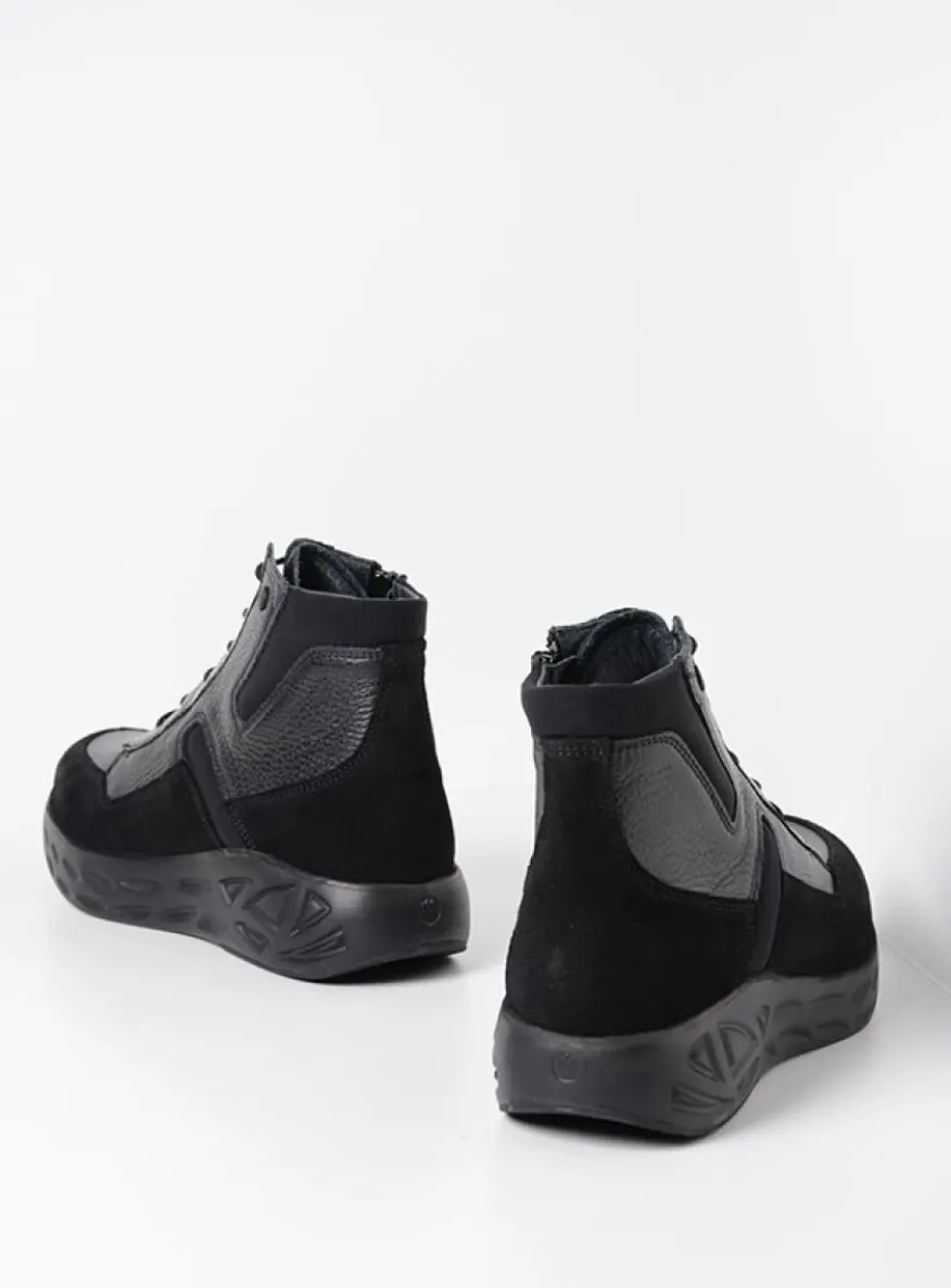 Stoer, stevig en sportief: de Leap gaat jou een heel comfortabel najaar bezorgen. De veter-rits-combinatie maakt in- en uitstappen een fluitje van een cent. Met de veter kun je de boot bovendien perfect afstellen om je voet en enkel. Aan de bovenkant zie je een verdikking, de polsterrand, dit is een soort kussentje voor je enkel dat het snijden van de rand in je huid voorkomt. De zool is licht en superdempend; ideaal voor vrouwen met hielspoor en eigenlijk voor iedereen want je krijgt zo minder snel vermoeide voeten. Voor loopt de zool iets op. Die oplopende neus zie je veel bij Wolky en die is er niet voor niets, want hierdoor wikkel je je voeten moeiteloos af en dat maakt lopen makkelijker. Nog een pluspunt: de Leap is gemaakt op een ronde leest, de tenen hebben zo lekker veel ruimte. Kortom, wij hebben er alles aan gedaan om de Leap jouw ideale winterschoen te laten zijn!