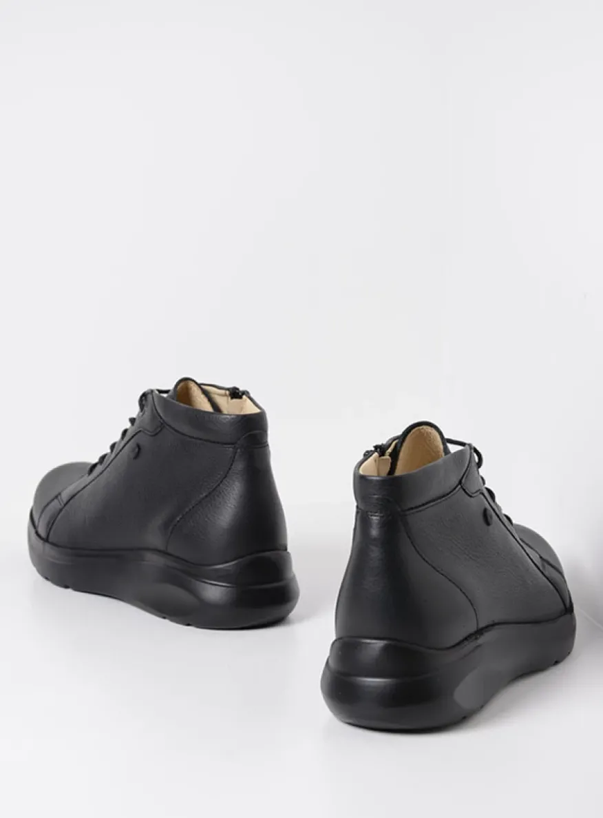 Voor iedereen die op zoek is naar een comfortabele boot zonder poespas, is de Lima dé perfecte keuze. Deze veterboot heeft een fantastische pasvorm. De veter-rits-combinatie maakt aan- en uittrekken heel makkelijk. Door de veter is de schoen bovendien perfect af te stellen om jouw voet. De zool is gemaakt van licht EVA, een materiaal dat bekend staat om zijn goede demping. De neus loopt iets op, waardoor op een natuurlijke manier de afwikkeling van de voet wordt gestimuleerd. Zo loop je úren op deze boot, zonder bang te hoeven zijn voor vermoeide voeten.