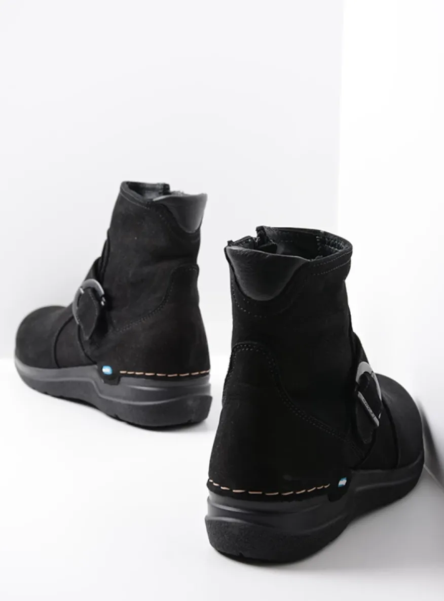 Deze mooie enkellaars heeft het comfort van de beroemde roll moc serie, maar dan in een ander jasje. De siergesp geeft de schoen extra karakter en tegelijkertijd biedt de lichtgewichte PU-zool met ronde afloopneus extra comfort. Klaar voor de winter?