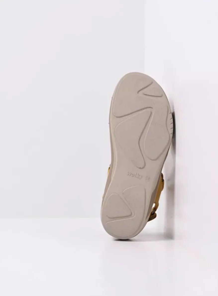 Alles om comfortabel van A naar B te komen, vind je terug in Wolky’s Acula. Deze sandaal is optimaal verstelbaar dankzij de vier klittenbandsluitingen: twee op de voorvoet, een op de wreef en een op de hiel. Het suède dekje op het voetbed zorgt ervoor dat de sandaal ultra-zacht aanvoelt. Het onderwerk is gemaakt van PU en in combinatie met het stevige (vaste) voetbed zorgt dit voor een goede demping. Hierdoor kun je moeiteloos langere afstanden afleggen. Heb je de gevlochten bandjes al gezien? Die geven de sandaal een chique uitstraling.