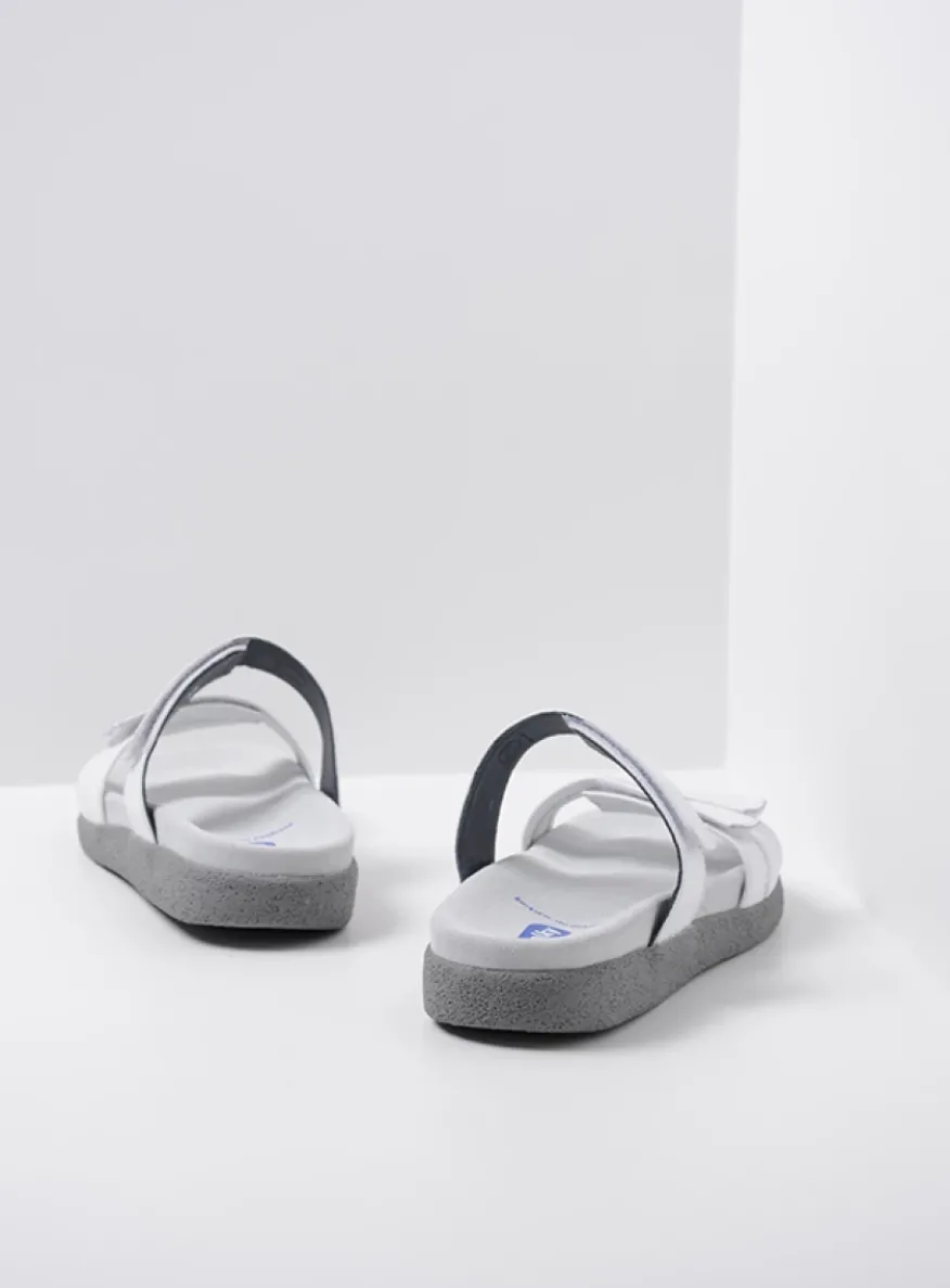 Deze klassieke slipper is niet meer weg te denken uit onze zomercollectie. Door de drie klittenbandsluitingen (twee op de voorvoet en een op de wreef) kun je de slipper perfect afstellen om jouw voet. Het kurken voetbed is afgedekt met een laagje foam en is vervolgens met leer omtrokken. Zo profiteer je van de support van kurk en de zachtheid van memory foam. Doordat de Cirrus een verfijnd uiterlijk heeft, kun je haar goed combineren met zowel broek als jurk!