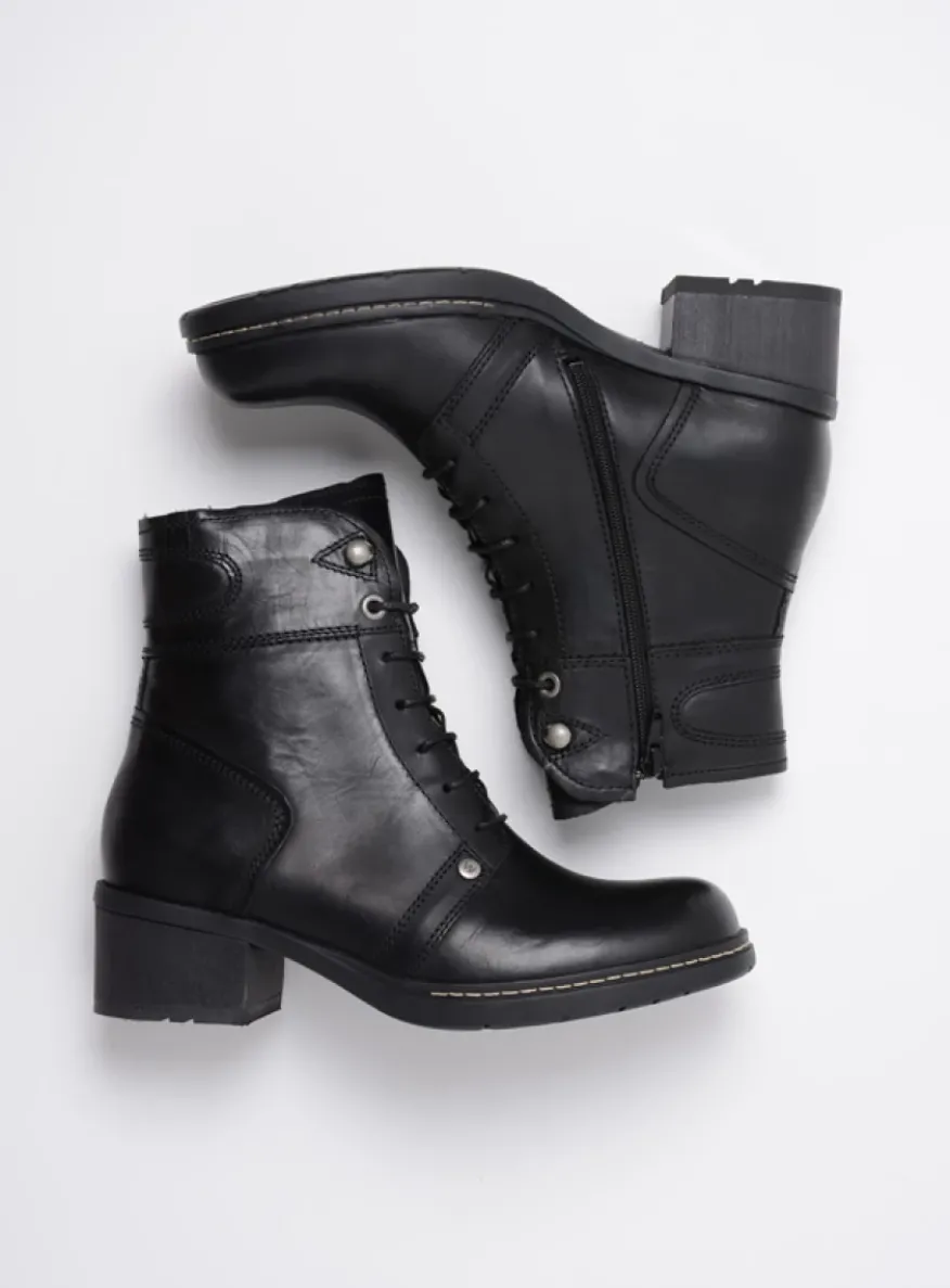 Stijlvol en vrouwelijk; dat zijn deze stoere biker boots van gewaxt leer met een houten hak. De laars is perfect voor bij je winterse outfits en krijgt een steeds ruigere look, hoe vaker je hem draagt. Dankzij het plateau onder de voorvoet loop je extra flexibel terwijl de achterkant van de schoen ervoor zorgt dat je voeten gestabiliseerd worden. De Red Deer heeft daarnaast een unieke zool die uit twee componenten bestaat. Het onderste gedeelte is slijtvast en in het bovenste gedeelte zit een foamlaag wat zorgt voor extra demping. Met de Red Deer kan je de plank niet misslaan!Pasvorm: Geschikt voor gemiddelde voeten (richtlijn breedtemaat G). Heb je een hogere wreef? Kijk dan bij de Red Deer XWGaat slippen van de hiel tegenMet polsterrand – een soort kussentje voor je hielMet leer omtrokken voetbedUitneembaar anatomisch voetbed – geschikt voor eigen zooltjesVolledig met leer gevoerd voor een goede vochtopnameGemaakt van zacht en soepel leerFlexibele buitenzool biedt optimale grip op elk oppervlakUitgerust met veter én rits – makkelijk in- en uitstappen en optimaal verstelbaarDempende EVA-tussenzoolEffectieve hakhoogte: 3,5 cm (hakhoogte minus de zooldikte aan de voorzijde)Schachthoogte: 14 cm.Gebaseerd op maat 38, het aantal centimeters kan bij andere maten afwijken